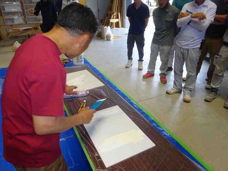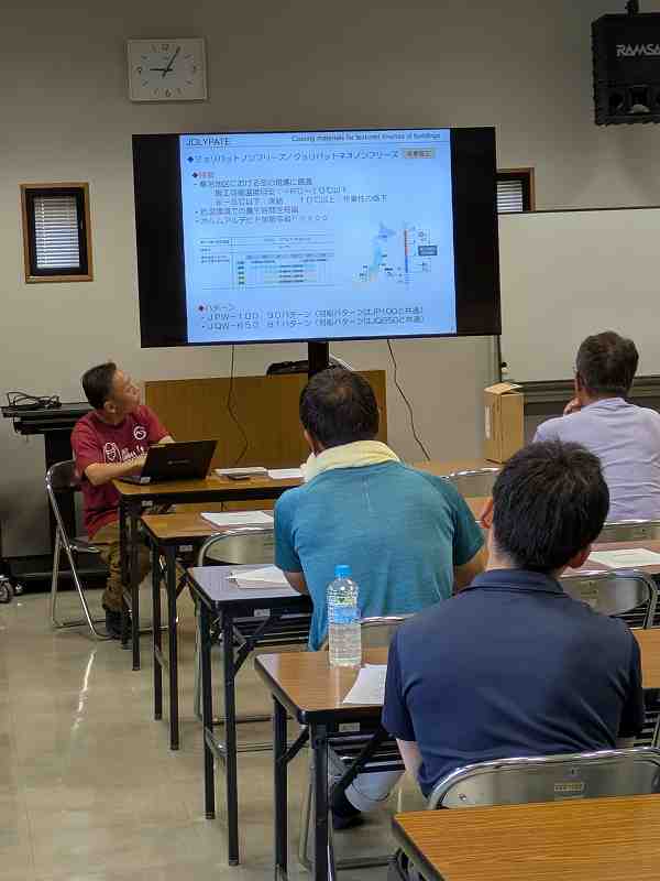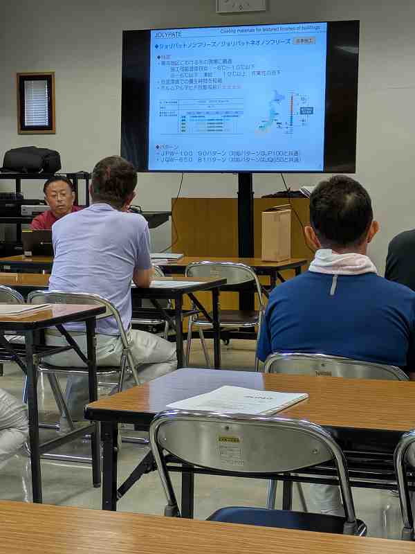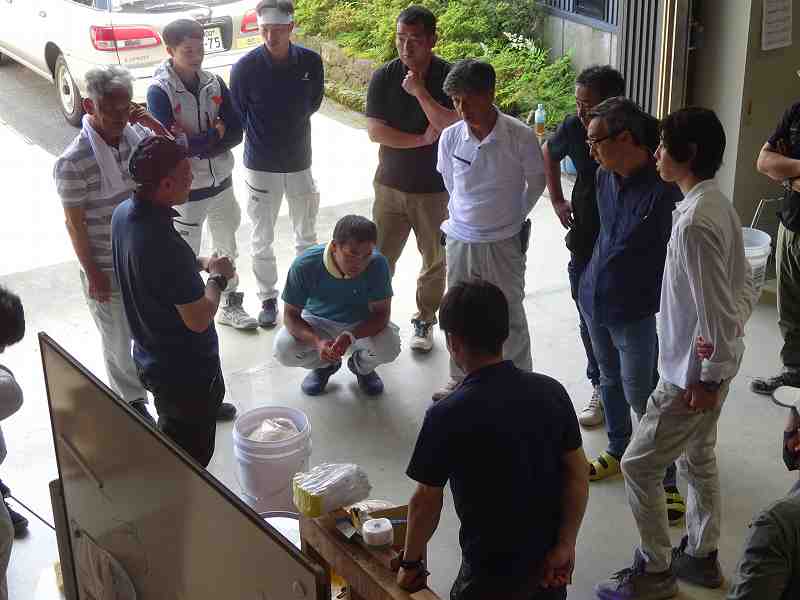 R7年6月21日(土) 材料講習会を開催いたしました 今年の講習内容は 黒崎産業㈱ 木塗り壁 アイカ工業㈱ ジョリパット爽土です