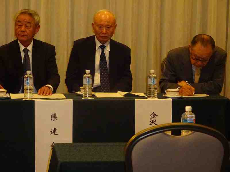 ☚正面左より県連会長 大橋渉三氏 金沢左官組合 相談役